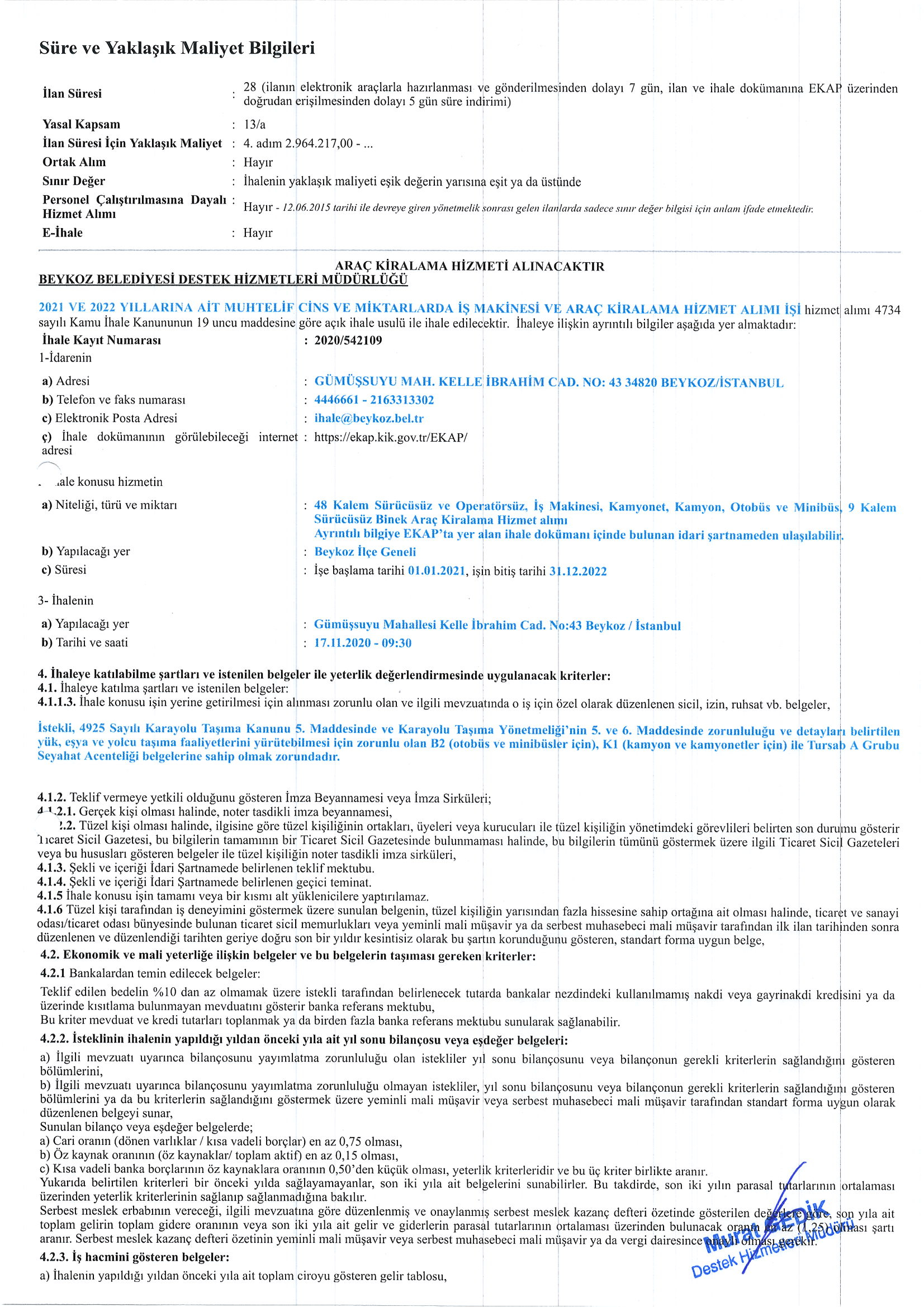 2021 VE 2022 YILLARINA AİT MUHTELİF CİNS VE MİKTARLARDA İŞ MAKİNESİ VE ARAÇ KİRALAMA HİZMETİ ALIMI İŞİ