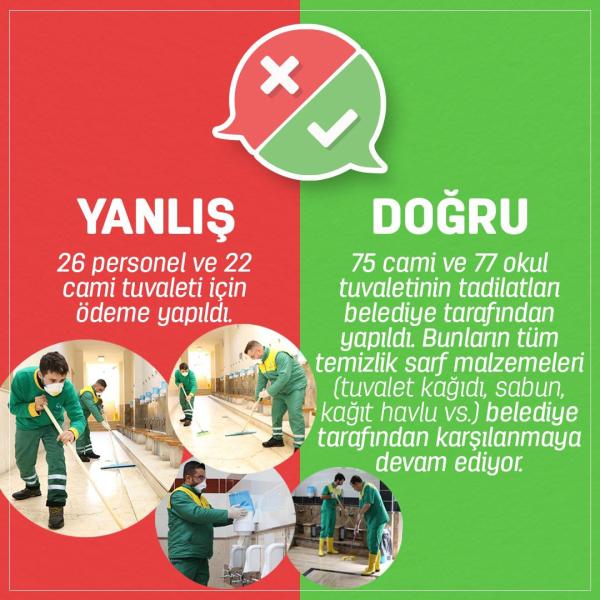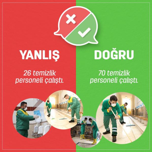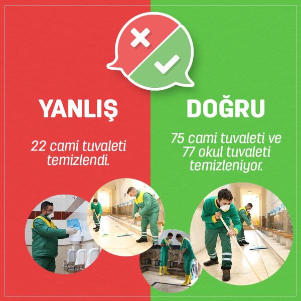 Koronavirüs pandemisinin tüm dünyayı sarstığı bir dönemde, her kullanımdan sonra temizlenen, vatandaşlara ücretsiz olarak sunulan ve kamu sağlığı açısından dünyaya örnek olacak bir hizmetin neden çarpıtılıp kamuoyunda provokasyona sebep verilmek istendiğini anlayabilmiş değiliz. Ancak “75 camii ve 77 okul tuvaletin temizleyerek” kamu sağlığının güvence altına alınmasını “26 kişi 22 cami tuvaleti temizlendi” şeklinde sunmak ve bu kişi ile cami sayısı üzerinden hesap yapmak iyi niyet olarak yorumlanabilecek bir durum değildir.