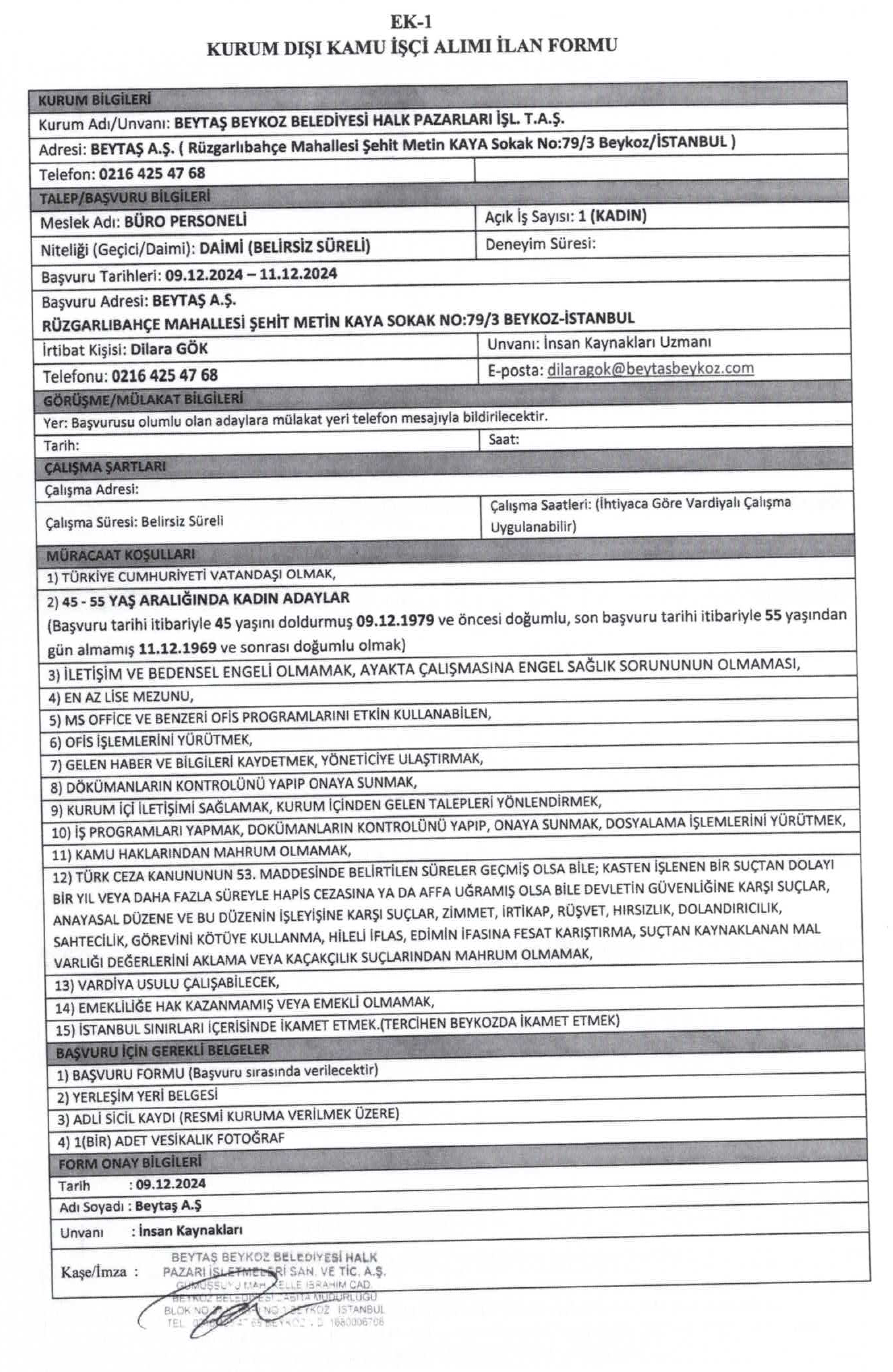 Beytaş A.Ş. Personel Alım Duyurusu (MAKAM ŞOFÖRÜ)