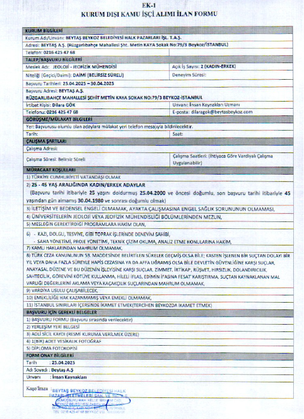 Beytaş A.Ş. Personel Alım Duyurusu (MAKAM ŞOFÖRÜ)