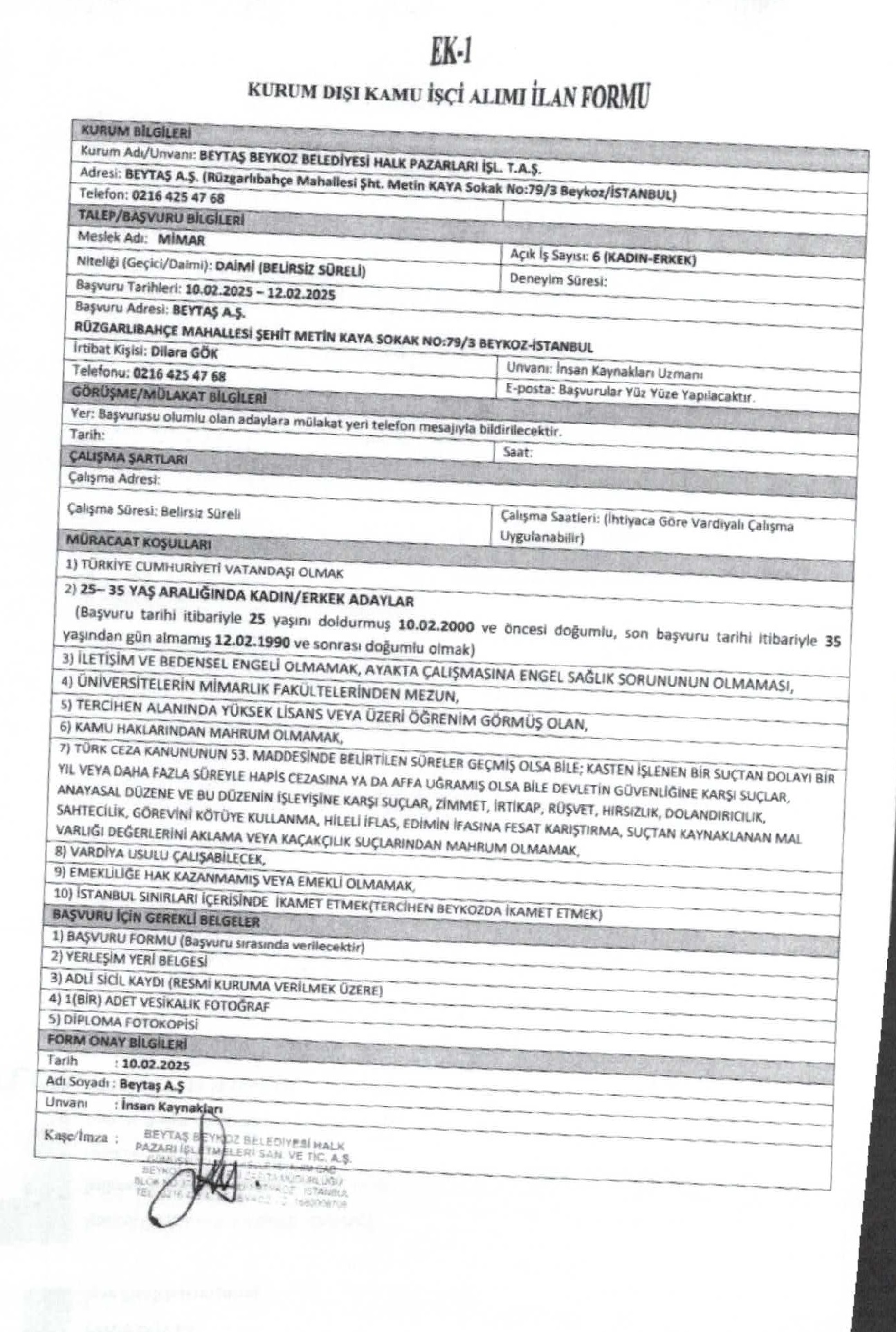 Beytaş A.Ş. Personel Alım Duyurusu (MİMAR)