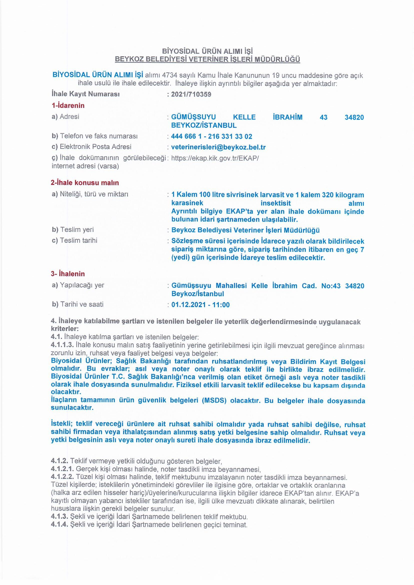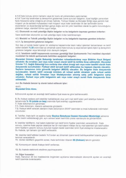 BİYOSİDAL ÜRÜN ALIMI İŞİ