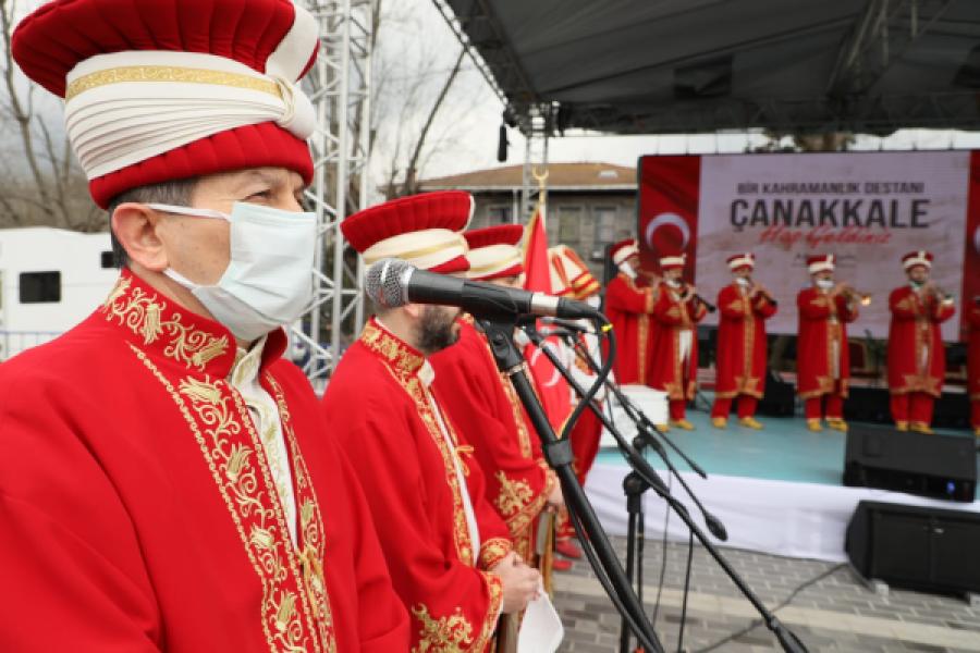 Çanakkale zaferine uzanan yolda şehit ve gazilerimizin fedakârlıklarının hatırlandığı programda ilk olarak Fatih Mehteran Takımı sahilde tarih boyunca düşmana korku salan zafer marşlarını söyledi, geçit töreni yaptı.