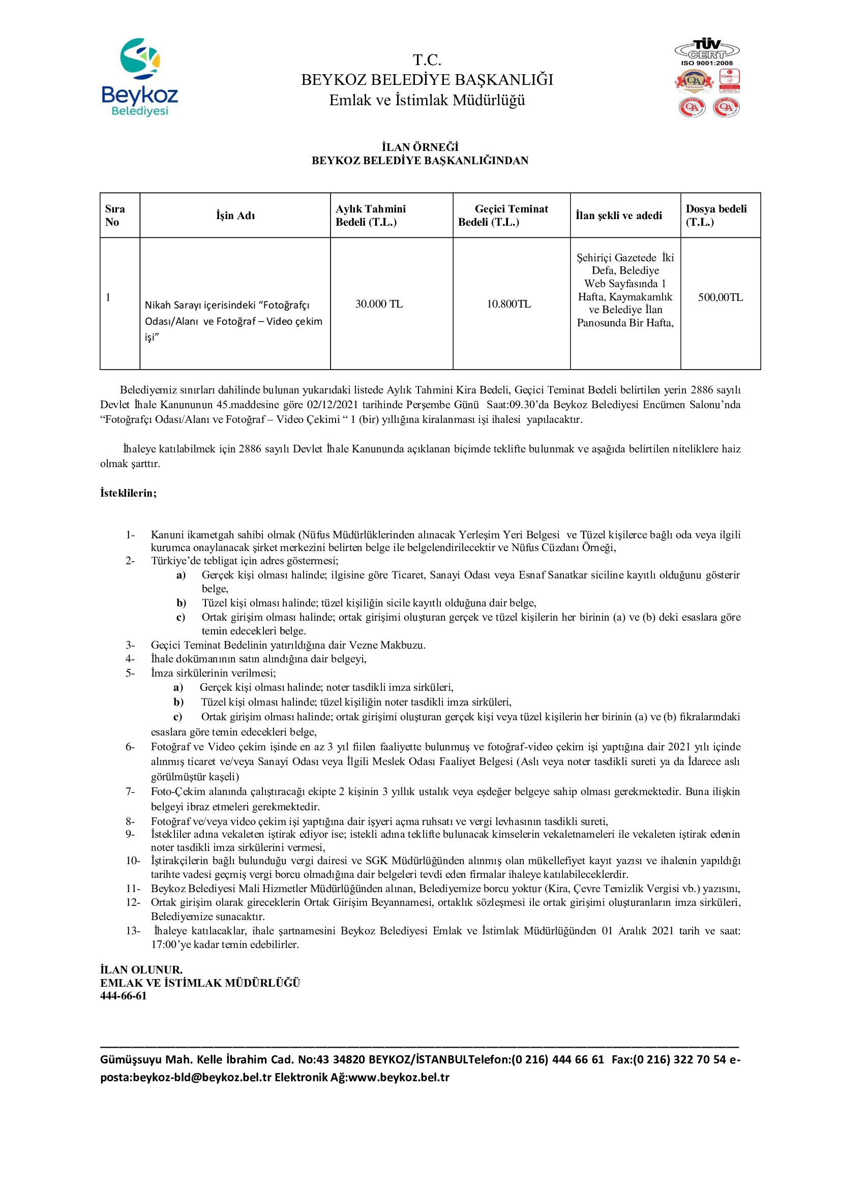 FOTOĞRAFÇI ODASI/ALANI VE FOTOĞRAF, VİDEO ÇEKİM İŞİ