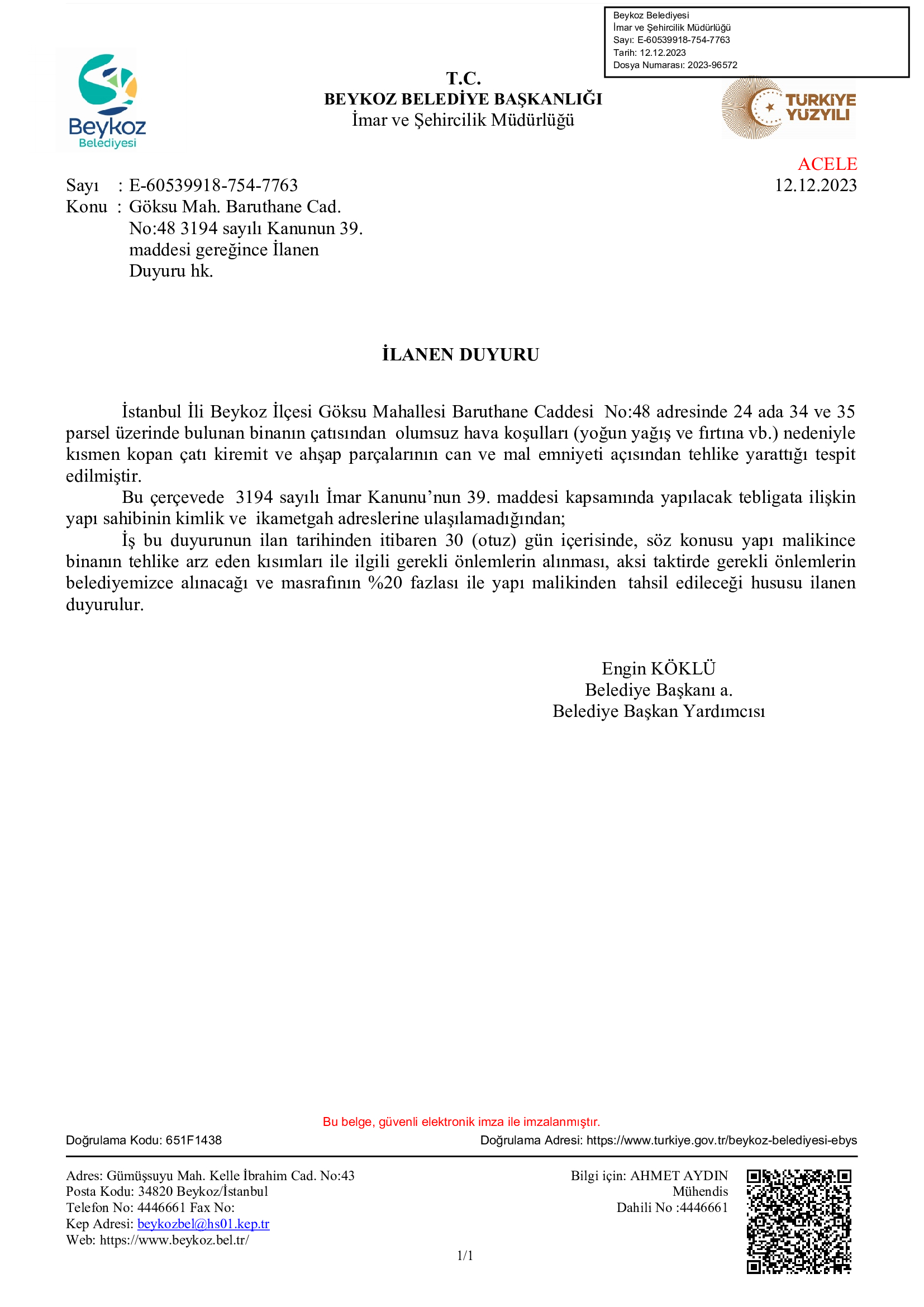 GÖKSU MAHALLESİ'NDE TEHLİKE ARZEDEN YAPI HAKKINDA