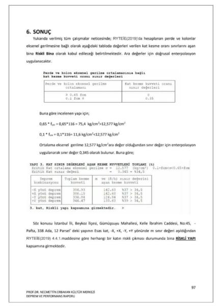 EK: Necmettin Erbakan Kültür Merkezi’nin yapı denetim raporunun ilgili sayfaları