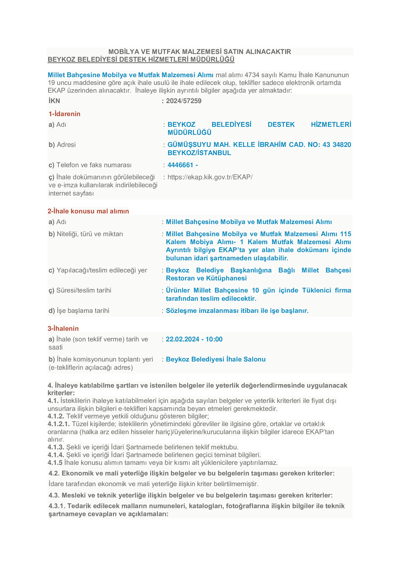 MOBİLYA VE MUTFAK MALZEMESİ ALIMI
