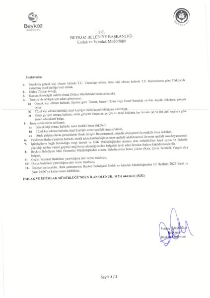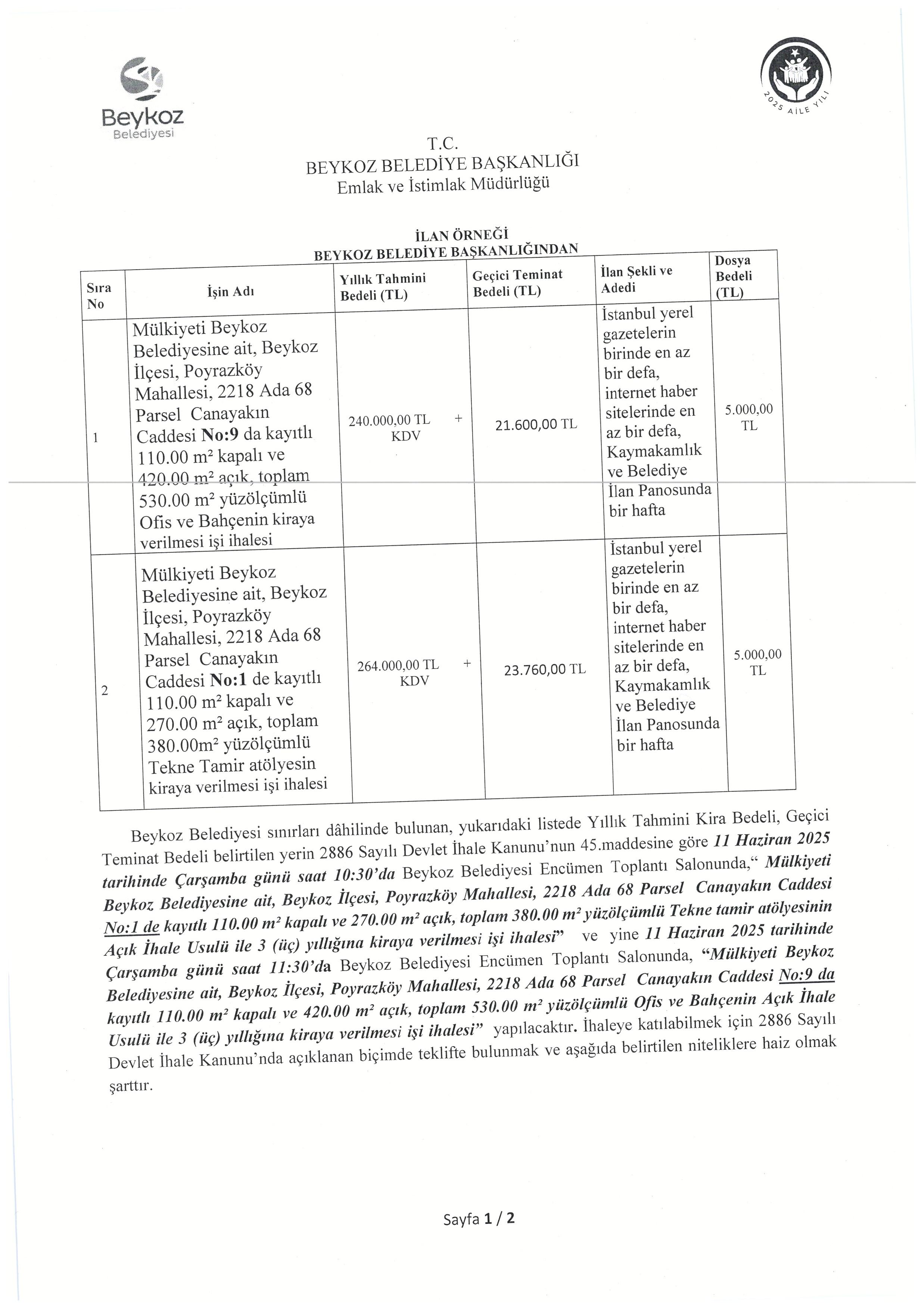 POYRAZKÖY MAHALLESİ 2218 ADA 68 PARSEL TAŞINMAZ KİRALAMA İHALESİ-No:1