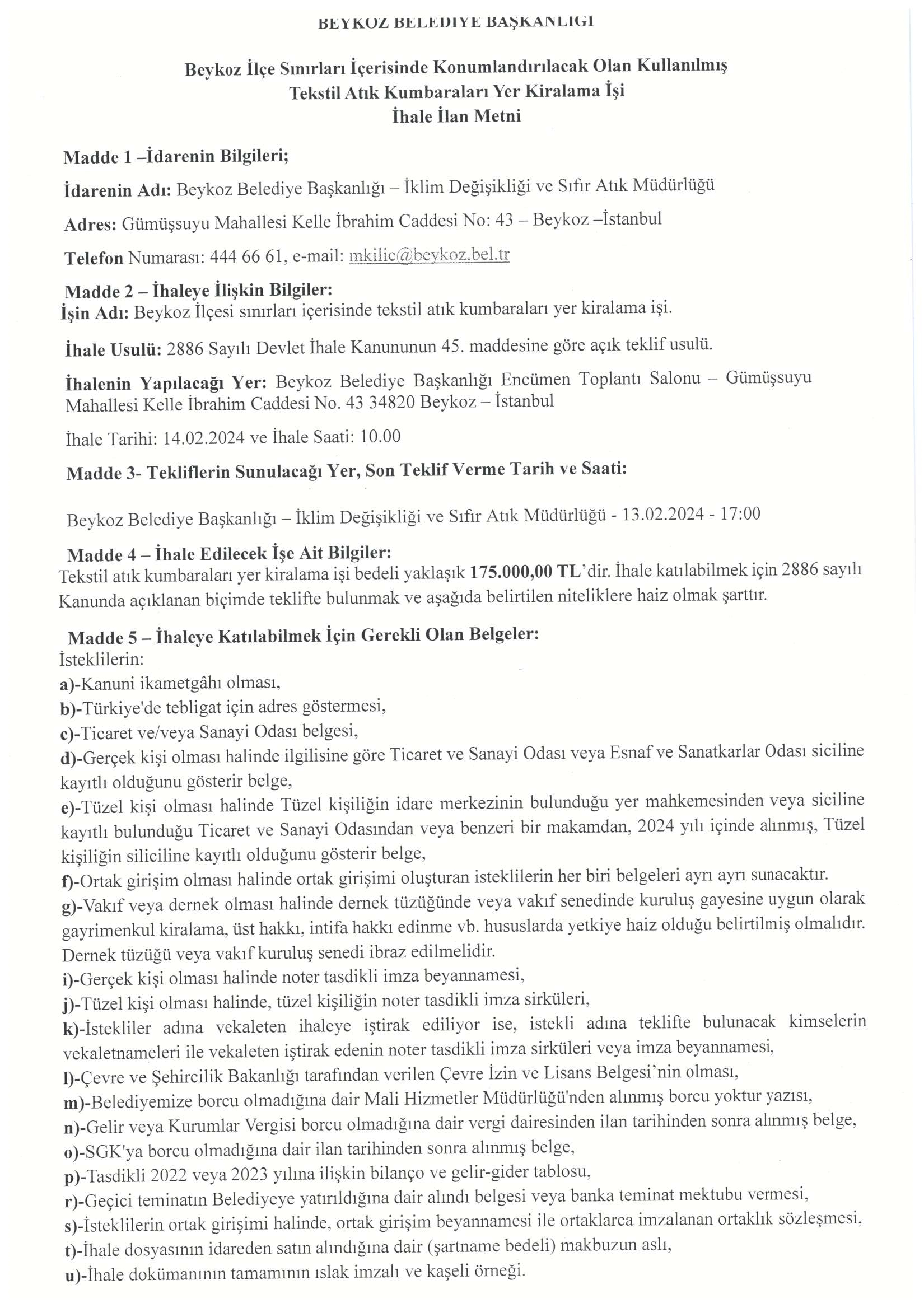 TEKSTİL ATIK KUMBARALARI YER KİRALAMA İŞİ