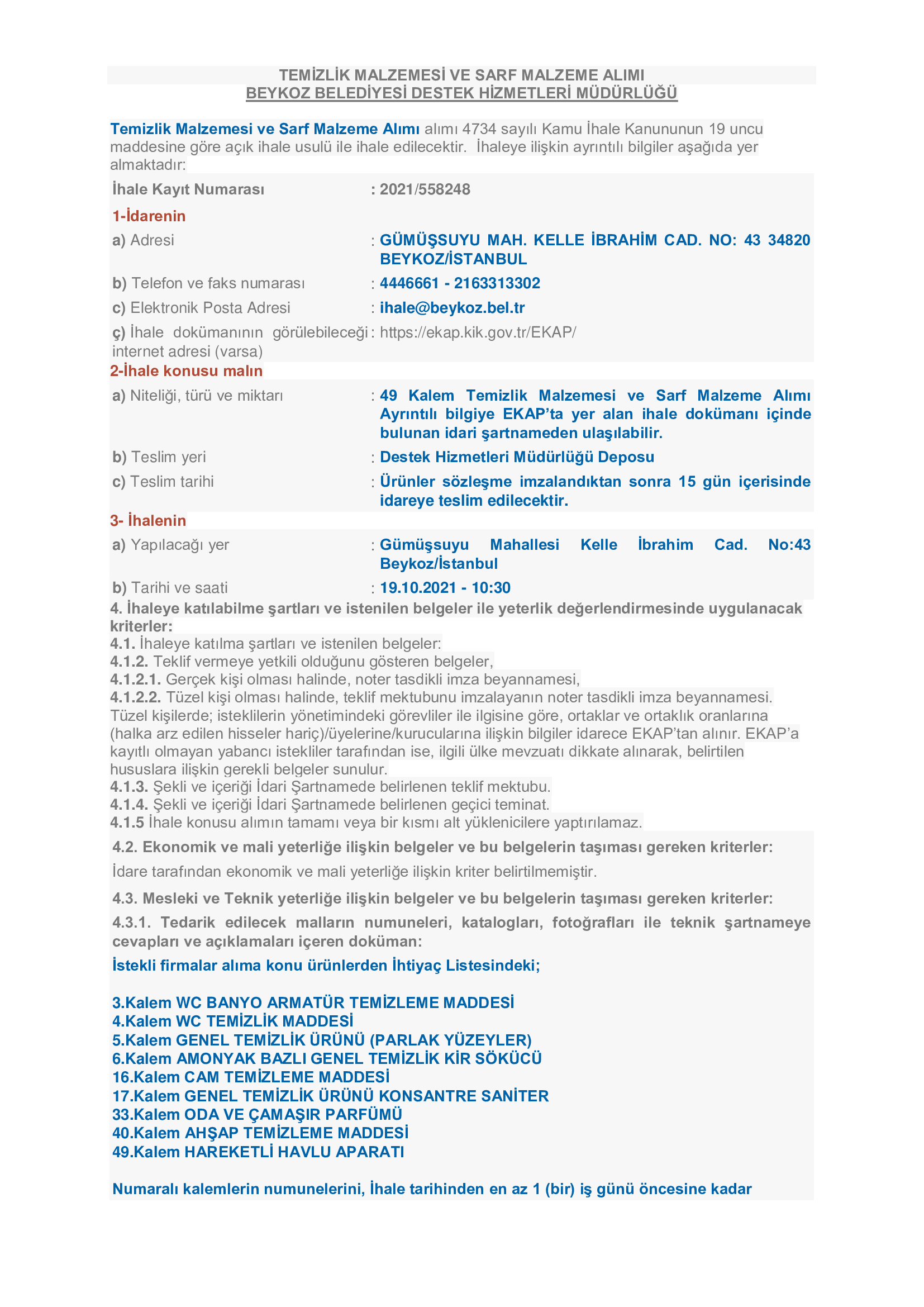 TEMİZLİK VE SARF MALZEMESİ ALIMI
