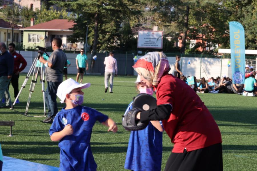 Ardından taekwondo, karete, kick boxs ve jimnastik öğrencileri yeteneklerini sergileyen gösteriler sundu ve ülke genelinde olduğu gibi ilçede de ilginin son yıllarda arttığı okçuluk branşında atış gösterisi yer aldı.
