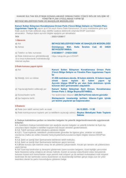 KANUNİ SULTAN SÜLEYMAN KONAKLAMASIZ ORMAN PARKI 3'ÜNCÜ BÖLGE GELİŞİM VE YÖNETİM PLANI UYGULAMASI YAPIM İŞİ