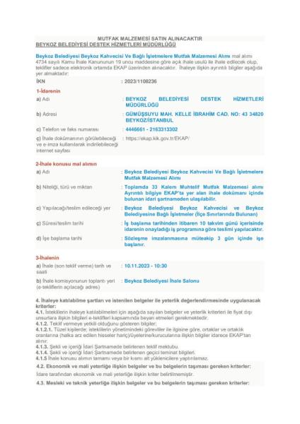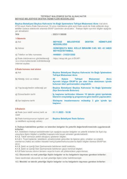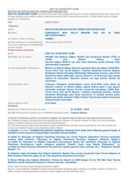BEYKOZ BELEDİYE BAŞKANLIĞI PERSONEL BANKA PROMOSYON İHALESİ DUYURUSU
