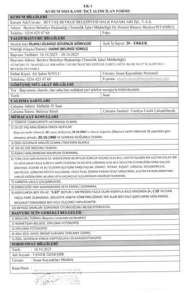 BEYTAŞ A.Ş. GÜVENLİK PERSONELİ ALIM DUYURUSU (Silahlı-Silahsız)