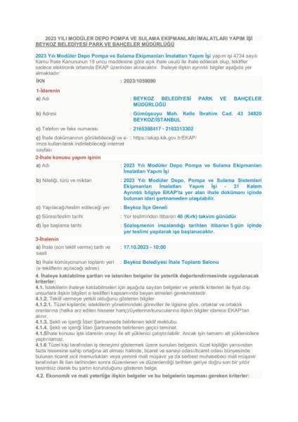 MODÜLER DEPO POMPA VE SULAMA EKİPMANLARI İMALATLARI YAPIM İŞİ