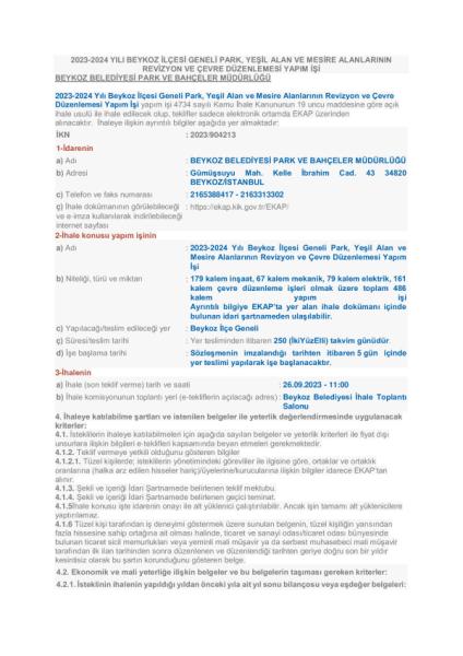 PARK, YEŞİL ALAN VE MESİRE ALANLARININ REVİZYON VE ÇEVRE DÜZENLEMESİ YAPIM İŞİ