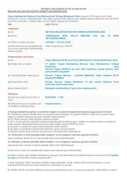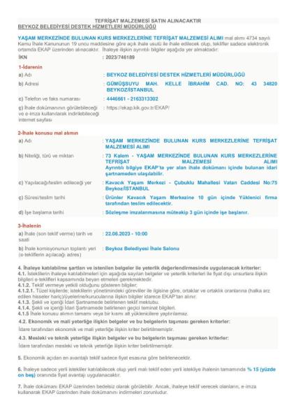 TEFRİŞAT MALZEMESİ ALIMI