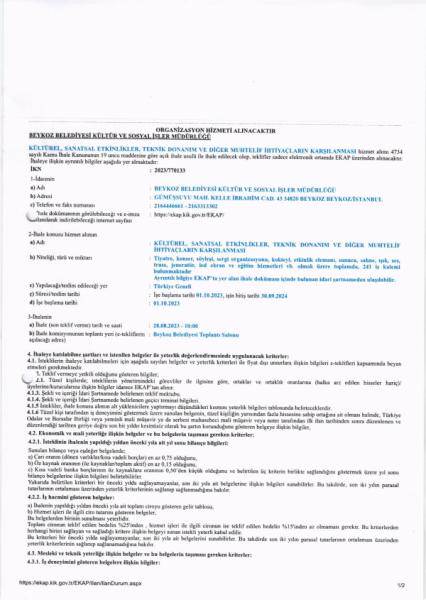 ORGANİZASYON HİZMETİ ALIMI