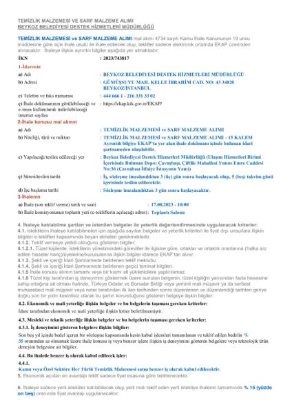 TEMİZLİK MALZEMESİ VE SARF MALZEME ALIMI