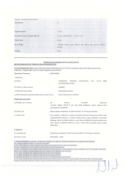 Başkanlığımız birimlerine hizmet vermek üzere Beytaş A.Ş. üzerinden 26 Nisan 2021- 15 Ekim 2021 tarihleri arasında çalışacak “Temizlik, Taşıma, İlaç...