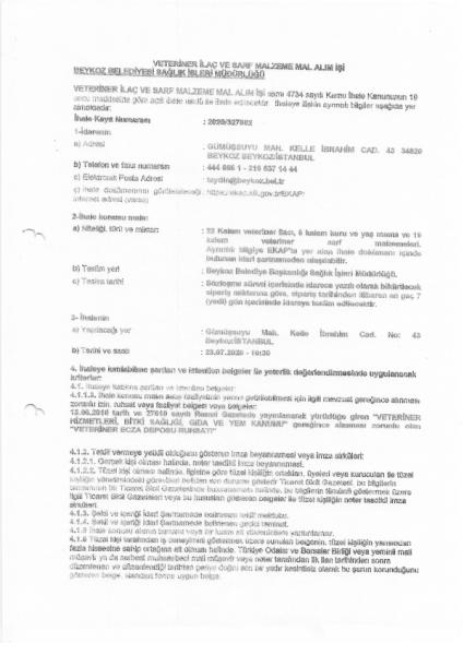 VETERİNER İLAÇ VE SARF MALZEME MAL ALIM İŞİ