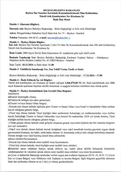 TEKSTİL ATIK KUMBARALARI YER KİRALAMA İŞİ