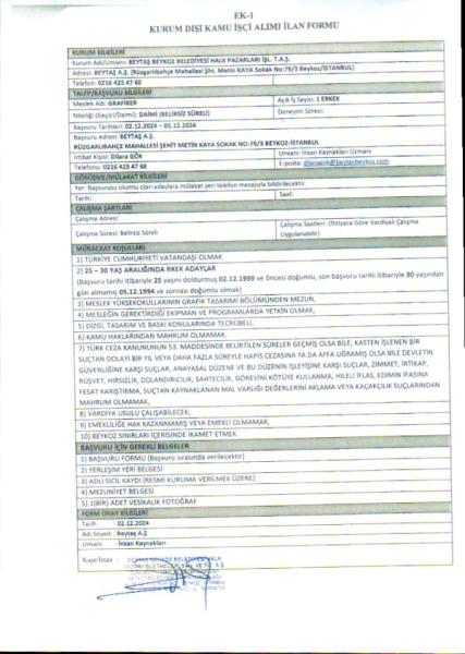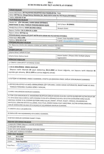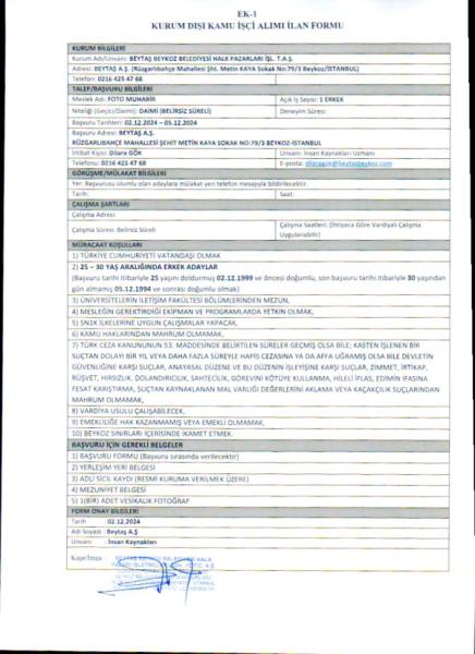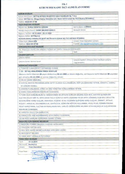 Beytaş A.Ş. Personel Alım Duyurusu (FOTO MUHABİR)