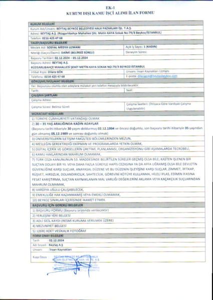 Beytaş A.Ş. Personel Alım Duyurusu (SOSYAL MEDYA UZMANI)