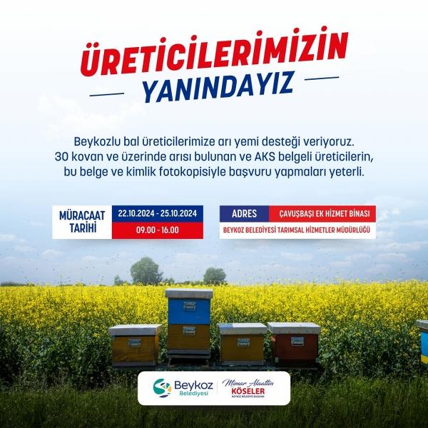 İstanbul’un en çok bal üretilen ilçesi Beykoz’da verimi artırmak için üreticilere arı yemi desteği verilecek. 30 adet ve üzerinde kovanı olan tüm kayı...
